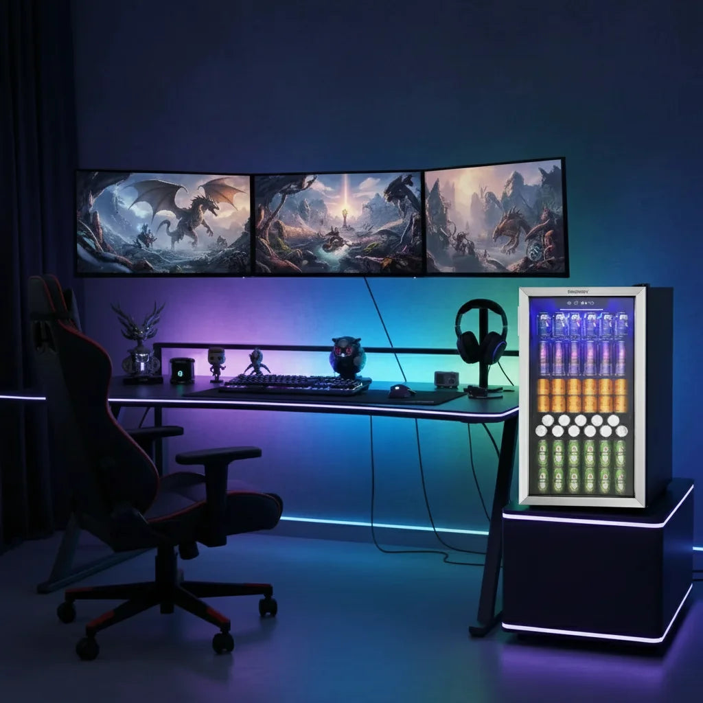 Our Rokes Beverage Refrigerator is designed to perfectly store up to 126 standard-sized cans, ensuring you always have plenty of cold drinks on hand for any occasion. It's the ultimate party companion!